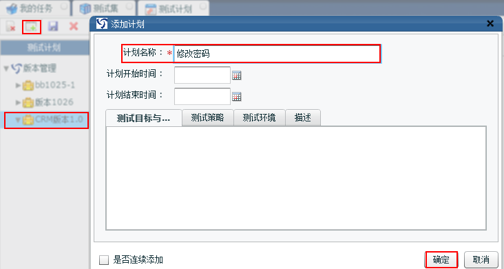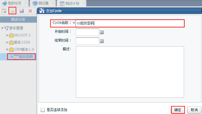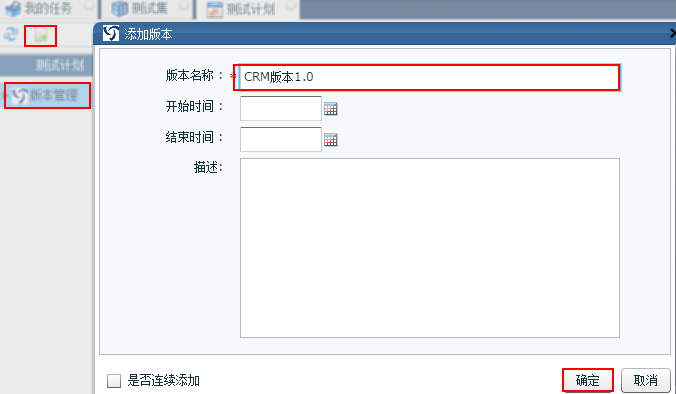 新建测试计划下的测试版本,测试计划,测试轮次 |