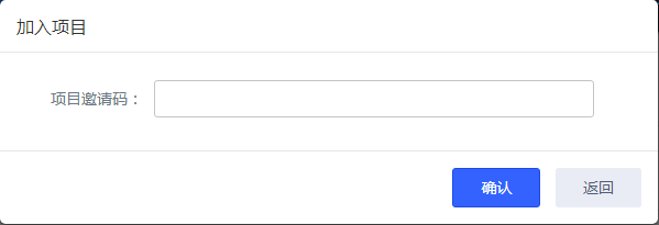 1.点击“加入项目”; 2.输入“项目邀请码”; 3.点击 “确认”,加入项目; |