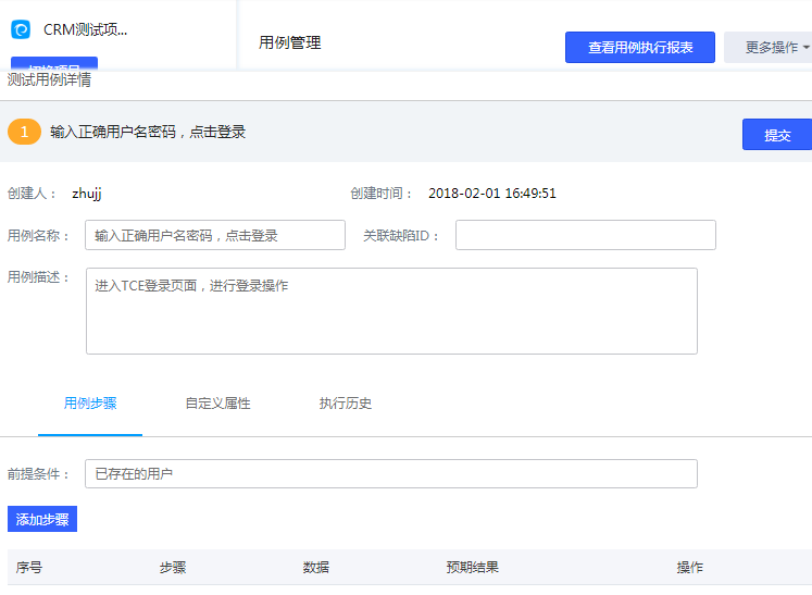 1.点击“新增用例”,增添用例; 2.点击“批量删除”,批量删除用例; 3.点击“复制”、“粘贴”、“剪切”操作用例; 4.点击用例名称,添加用例步骤; |