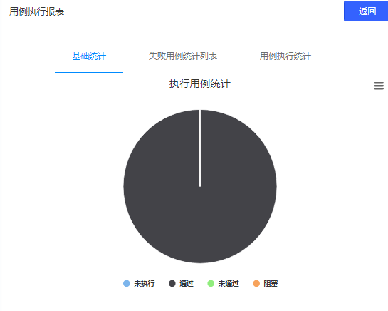 通过选择“基础统计”,“失败用例统计列表”,“用例执行统计”查看各个报表