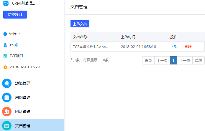 1.点击“上传文档”,上传项目相关文档; 2.点击“下载”,下载所需文档; 3.点击“删除”,删除文档。 |