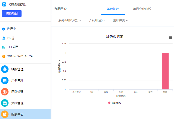 通过选择“系列(缺陷状态)”,“子系列(空)”,“图形种类”查看各个报表 |