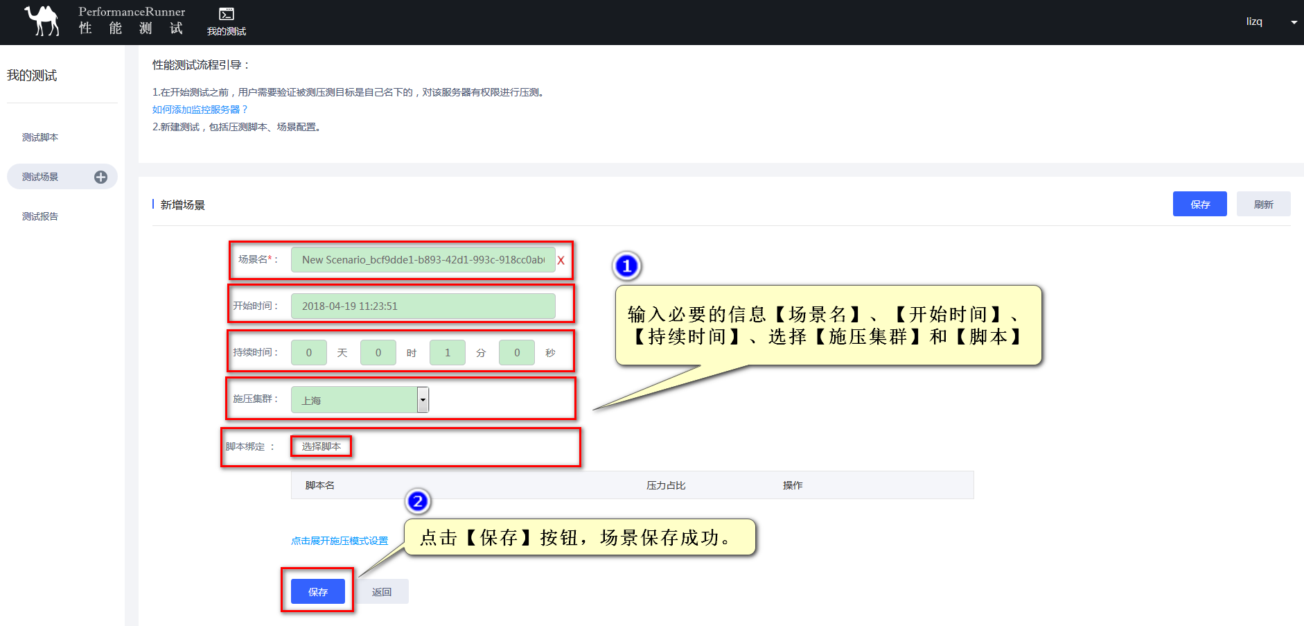 2) 在新增场景页面输入相关内容,单击【保存】按钮。