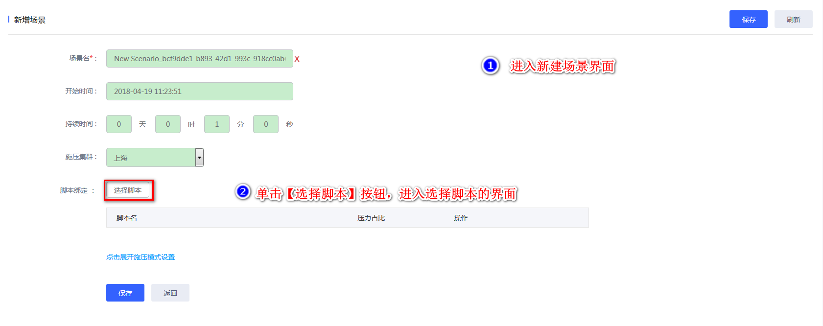 脚本是场景中压测执行的主要内容,场景只有绑定了脚本才具有可执行性。