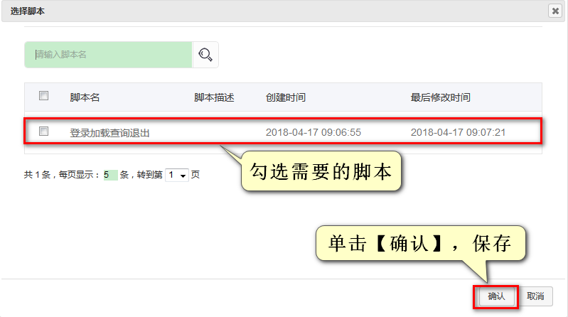 Step3:勾选需要的脚本,单击【确认】按钮。