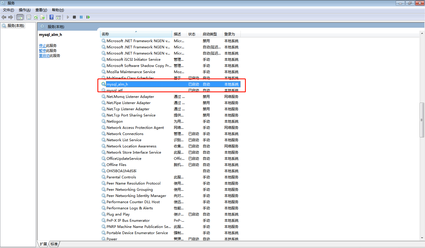 特别说明:ALM-H默认数据库服务名称是:mysql_alm_h数据库服务端口:3319