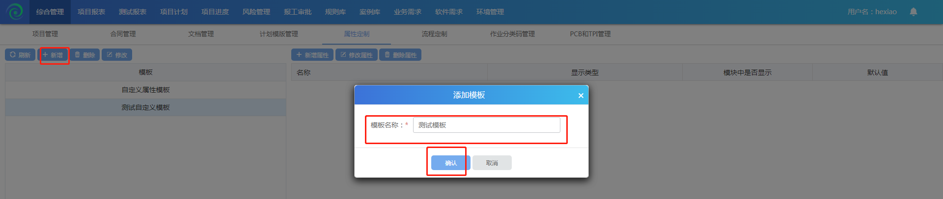 新增模板,点击【新增】按钮,进入到添加模板页面,输入模板名称,点击确定按钮,模板添加完成。