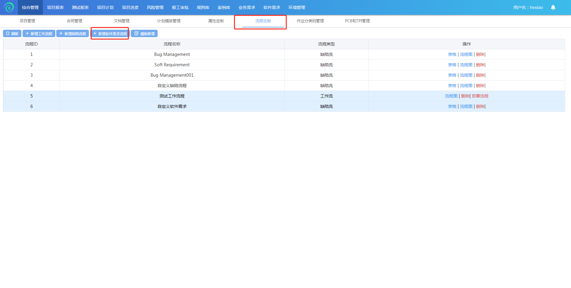 点击【新增软件需求流程】按钮,进入到创建软件需求流程页面;