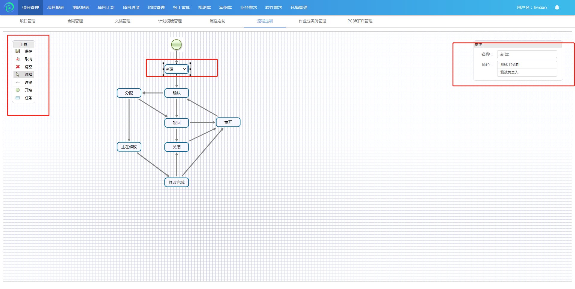 选中一个未使用的流程点击流程图,更改内容后(可以修改任务节点、节点处理人、流程顺序、流程名称、角色组等),点击保存,流程修改成功;(已使用的流程不可修改)