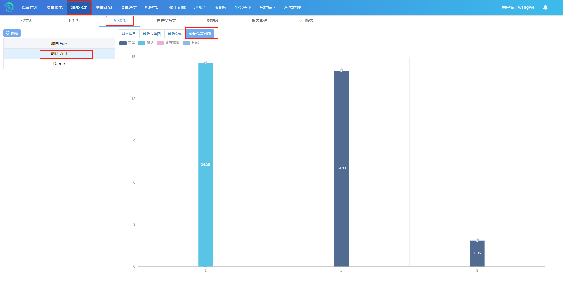 用图形,简单明了的展现出缺陷在我的项目中流程停留的时间