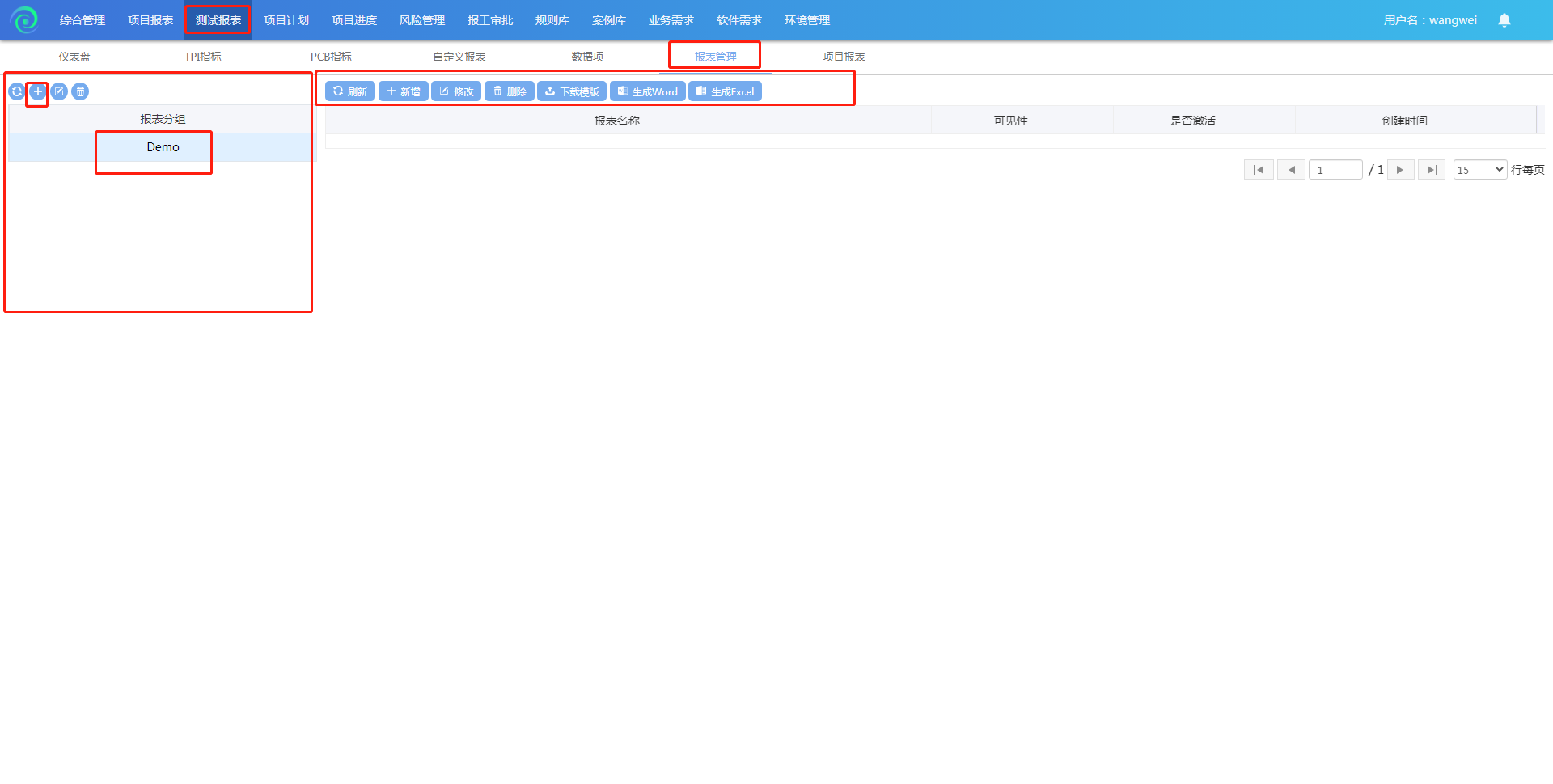 点击【报表管理】进入到报表管理模块。报表管理模块包含报表分组管理、报表管理,包含了新增、修改和删除报表等功能。