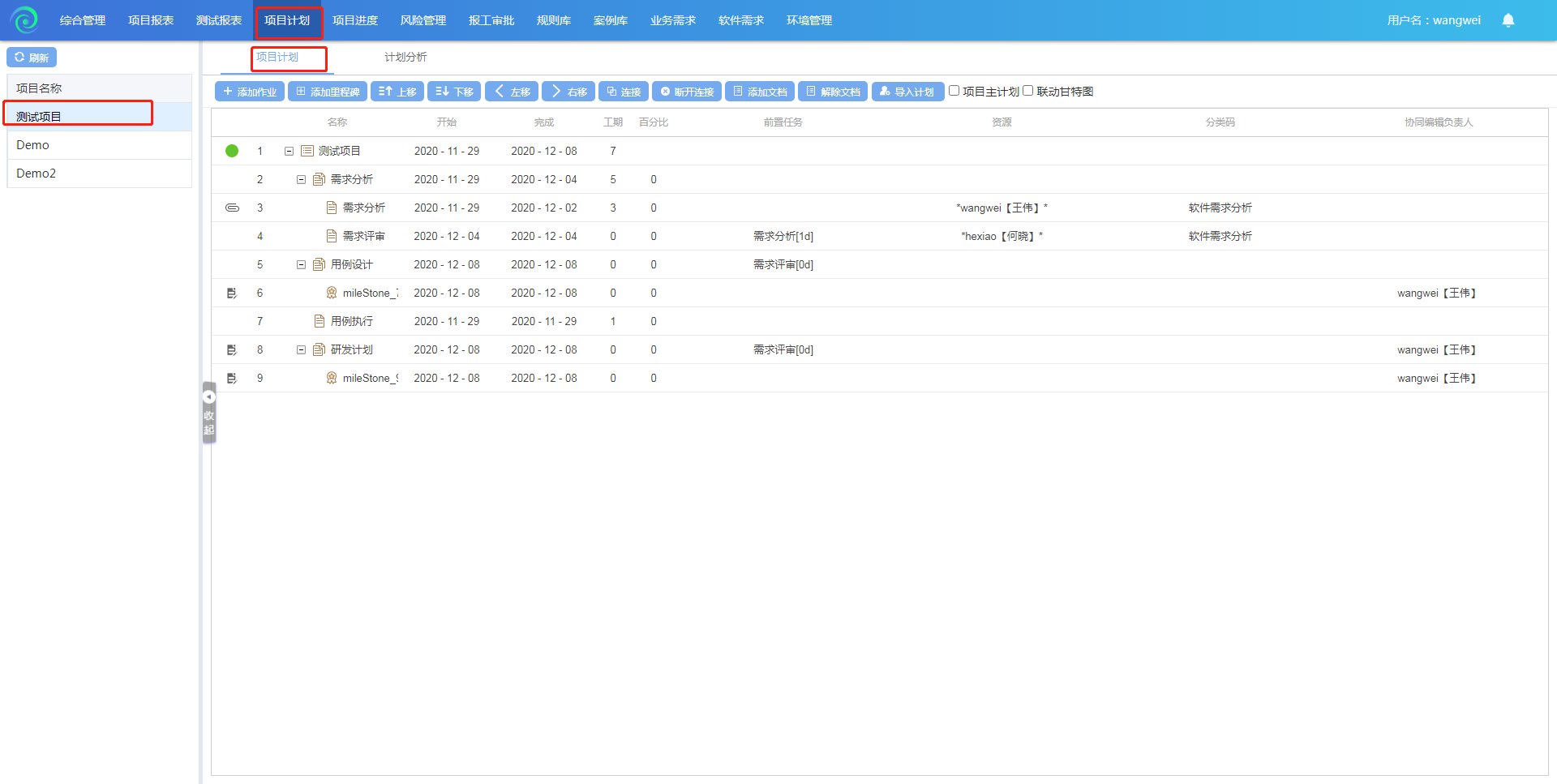 点击【项目计划】进入到项目计划页面。