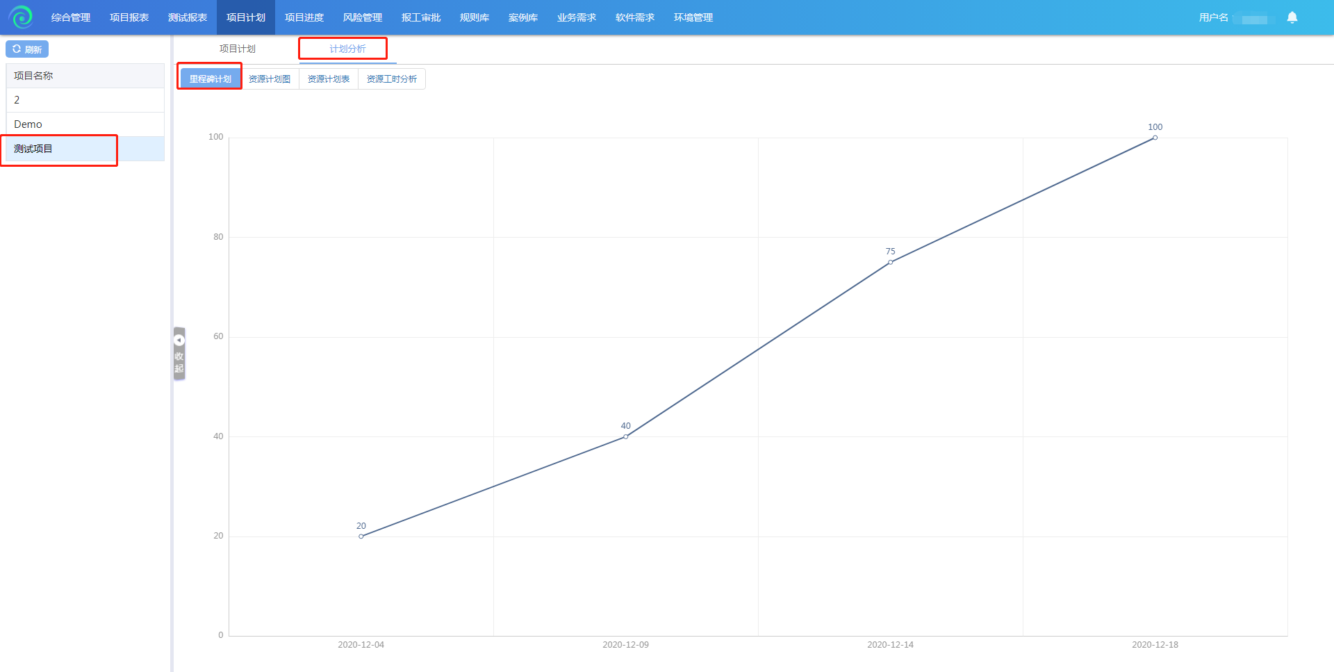 选择项目,可查看里程碑计划;(编写项目计划时添加的里程碑计划图)