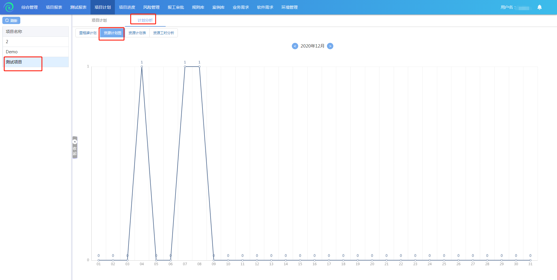 .选择项目,可查看资源计划图;(编写项目计划时添加的资源数量)