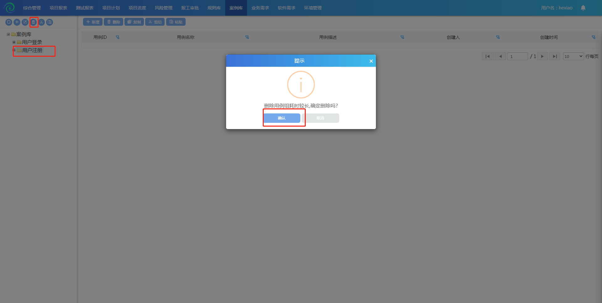 选中一个用例组,点击删除按钮,即可删除该用例组;