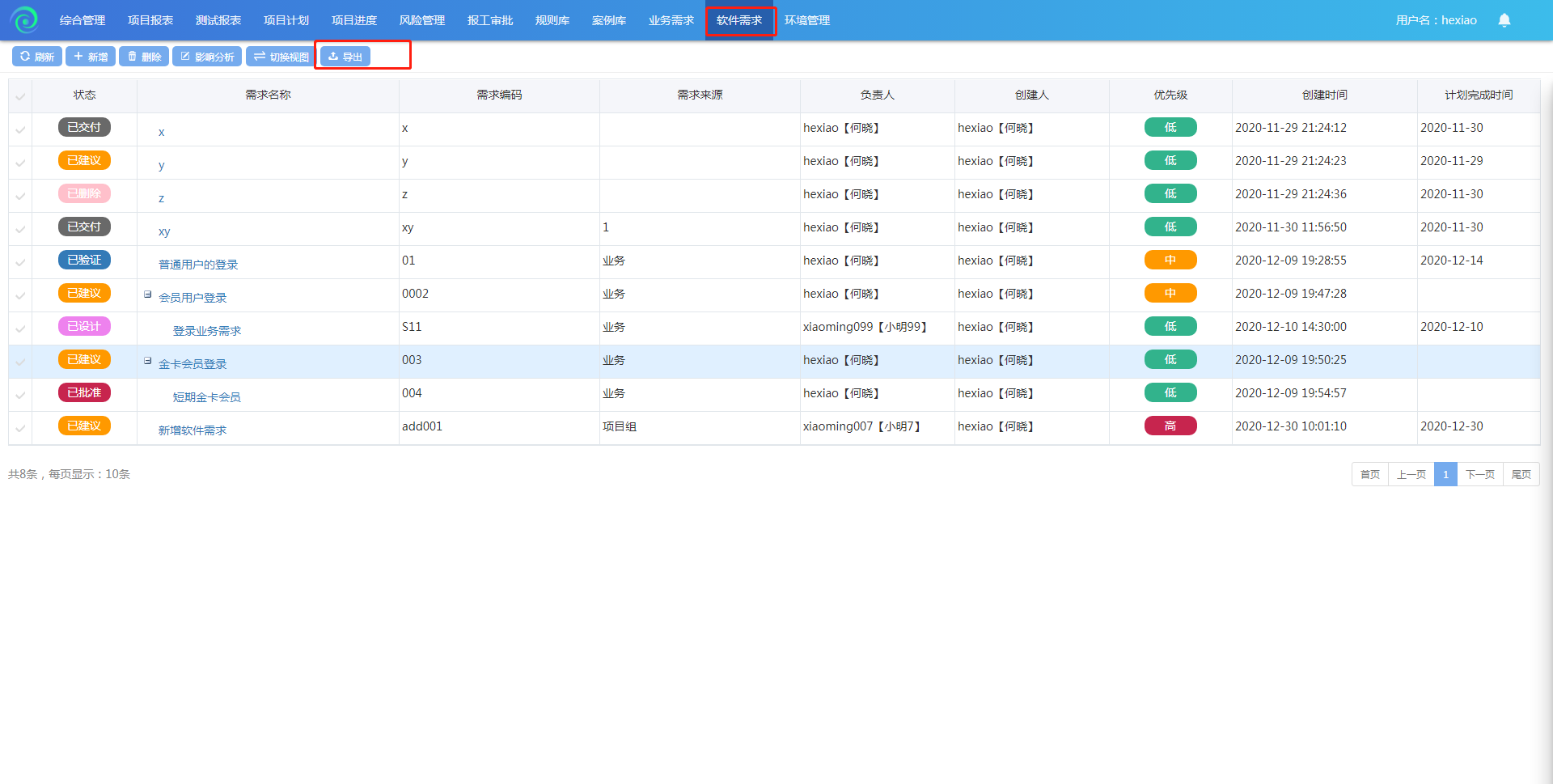 点击导出按钮,可将当前系统中的所有软件需求按模板批量导出至本地(excel);