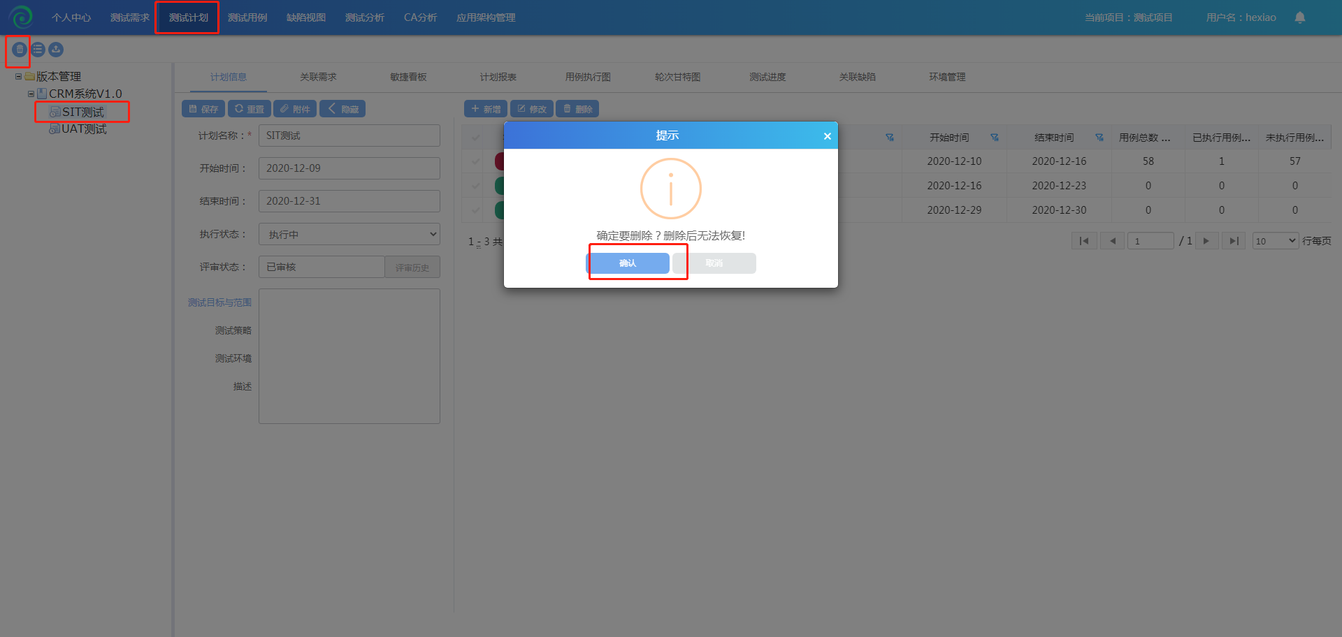 选中一个测试计划,点击删除按钮,可删除该测试计划;