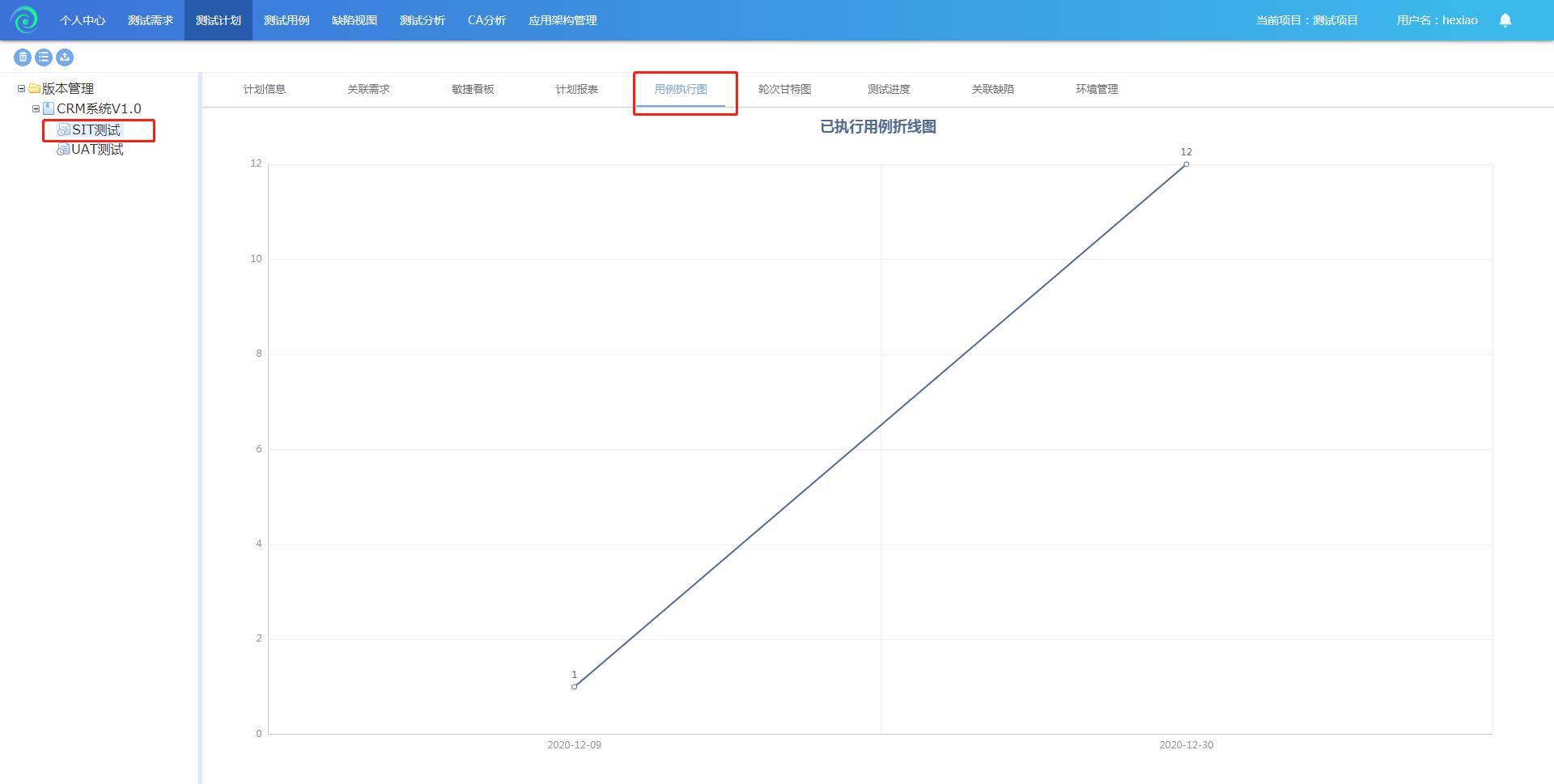 选择一个测试计划,点击用例执行图,可以查看该计划下的用例执行状况;