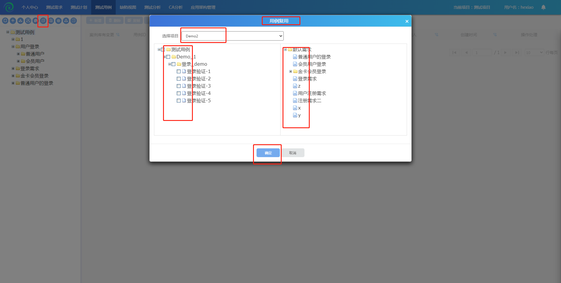 5.点击确认,用例复用成功;