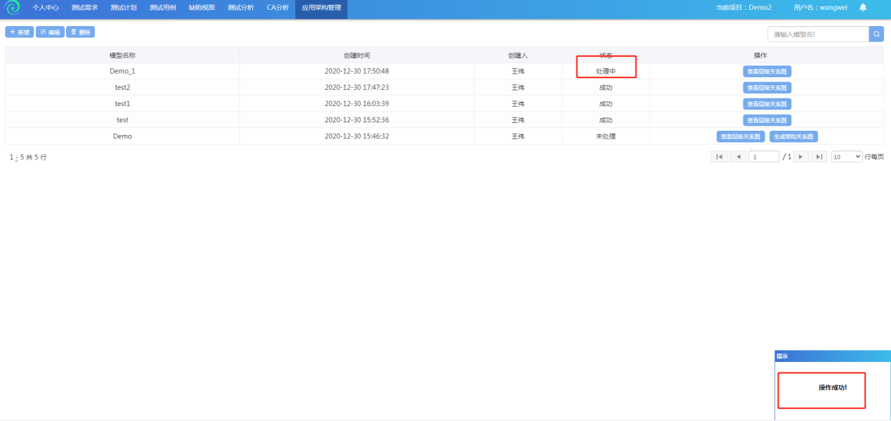 提示保存成功后,点击查看层级关系图,进入应用架构层级图界面。