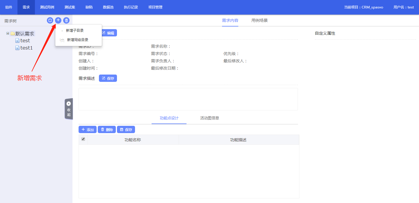 可以对功能点进行添加,主要用于添加用例的业务规则