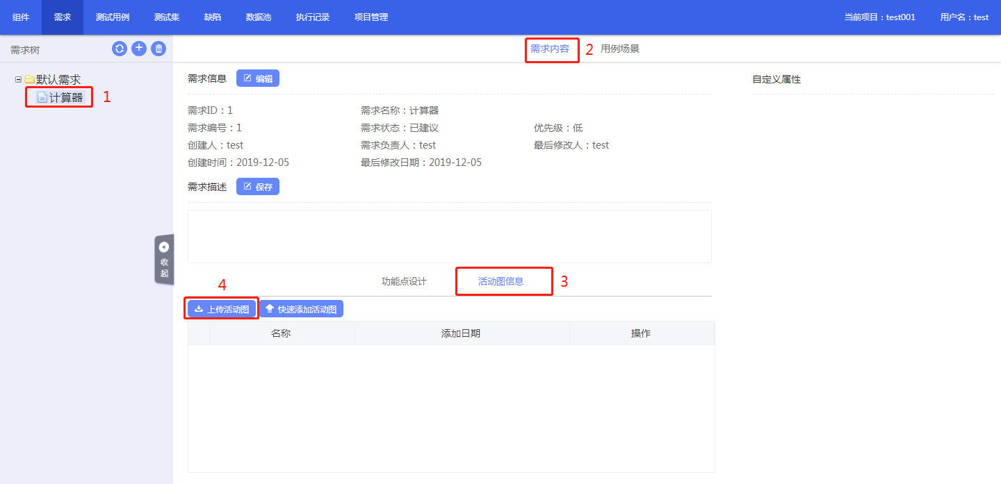 选中该需求后,在需求内容界面的活动图信息模块,上传活动图