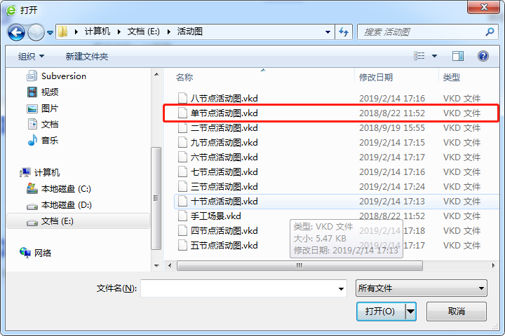 选择一个.vkd文件后,点击“打开”上传该活动图