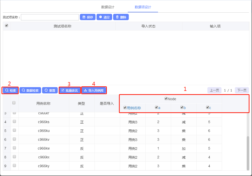 进入数据项设计模块,按照图示步骤生成用例并将用例导入用例库