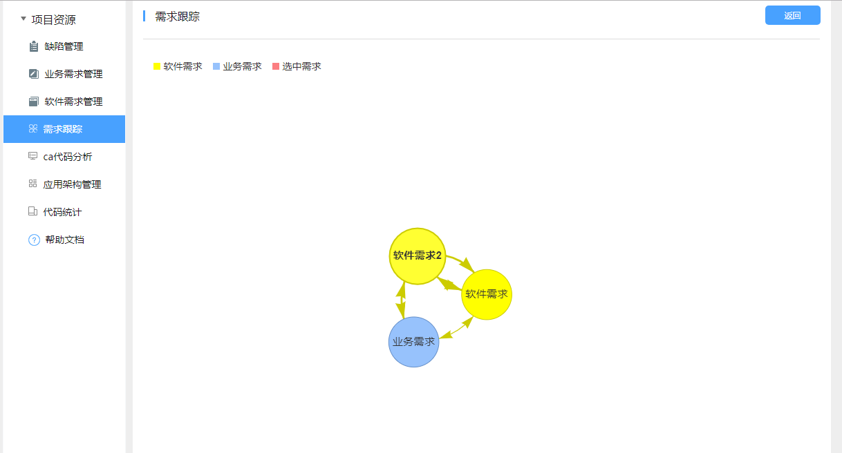 需求跟踪是软件需求与业务需求、软件需求与软件需求、业务需求与业务需求之间的关联关系,用关系图展现方便开发者能更直观看到需求之间的关联关系。