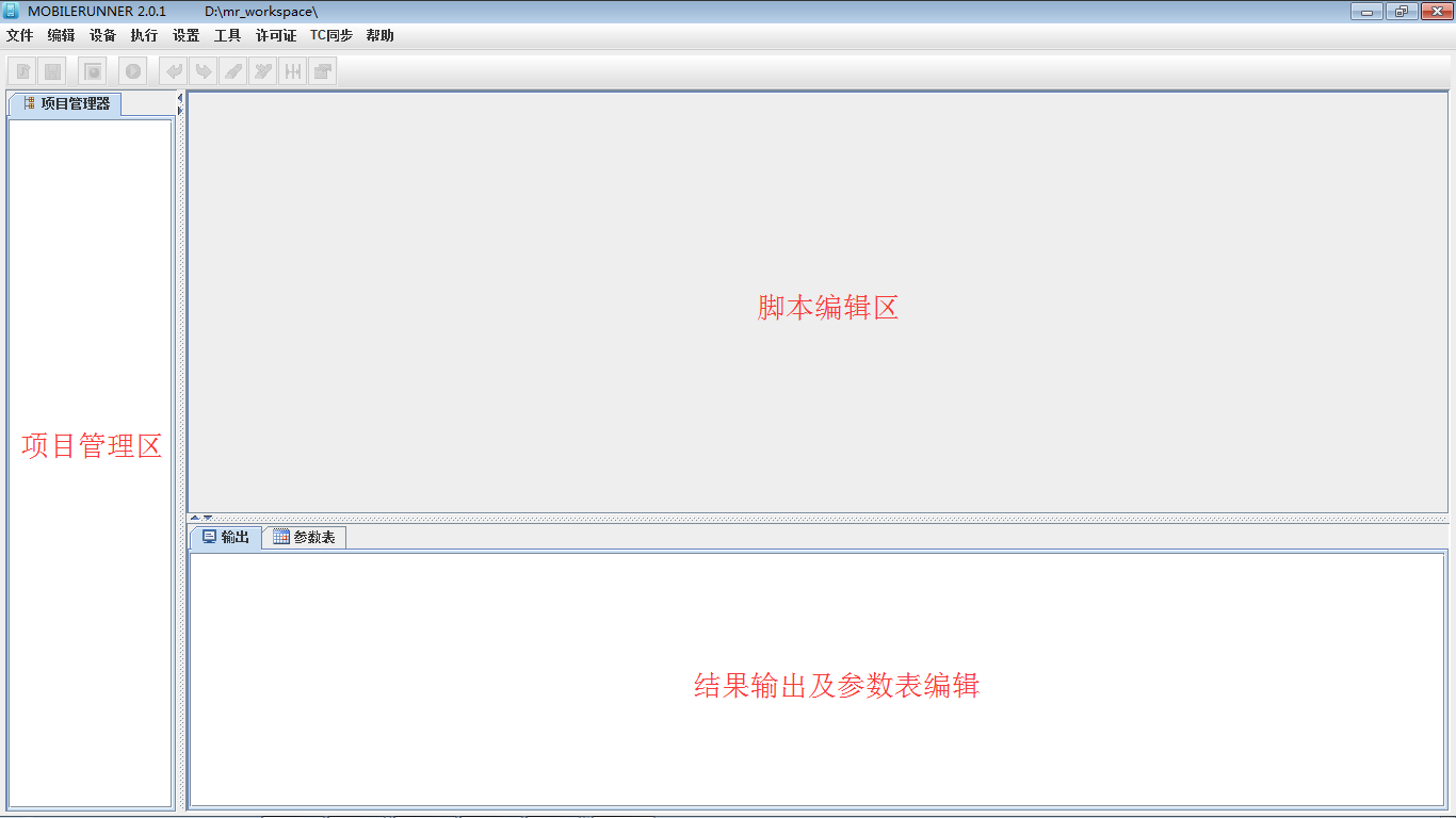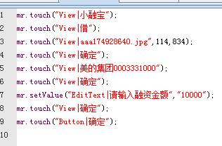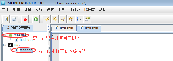 ●脚本编辑区:对测试脚本编辑,在MobileRunner中位于水平拆分条的上部;