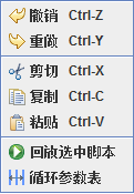 如上所示,所有对脚本的编辑操作都可以在编辑菜单下完成,包括对脚本的撤销,重做,查找,替换,查找下一个,剪切,复制,粘贴以及对象库。
