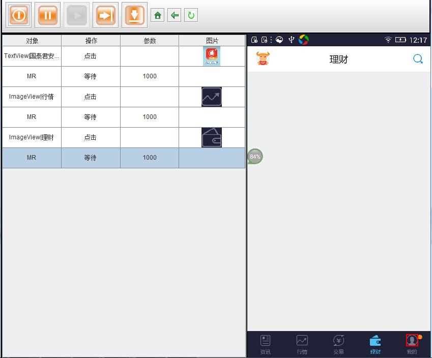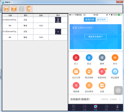注意:录制过程中可暂停录制,此时对屏幕进行操作不会生成对应的脚本信息,暂停时开始键启用;