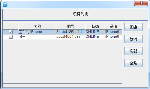 在执行菜单中,点击开始执行按钮,弹出设备列表页面,选择多个设备信息,点击回放按钮,弹出回放页面。