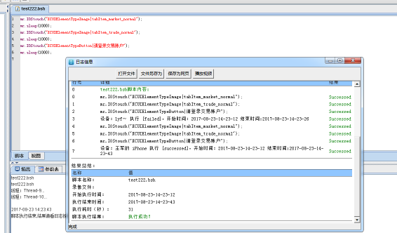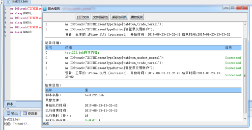 回放脚本的过程,实质是对先前的录入动作的一次重复操作,只是这个过程是根据录入的脚本自动完成的。下面以先前录入的IOS设备脚本为例,介绍一下回放操作及注意事项。