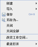 如上所示,所有对脚本的管理操作都可以在文件菜单下完成,包括对脚本的新建,导入,保存,另存为,关闭,改变工作空间,近打开,退出等等。