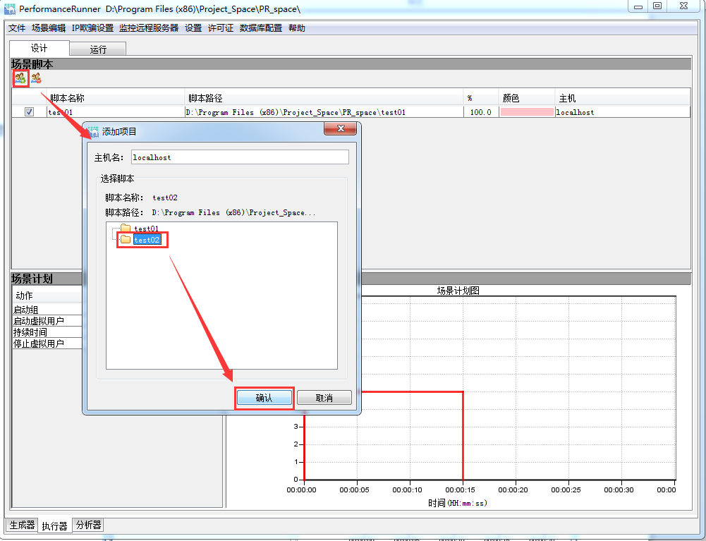 ,弹出添加项目选择对话框; - 选择需要运行的项目名称,点击确定按钮,完成项目的添加