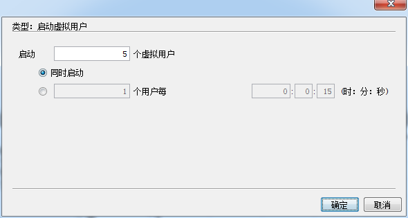 - 启动虚拟用户:该项设定了所有虚拟用户的启动方式,可以选择所有虚拟用户同时启动,也可以选择每个指定时间内启动指定数目的虚拟用户。