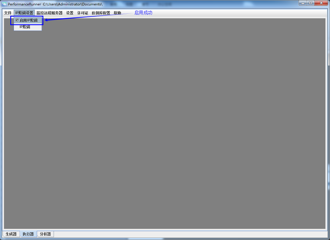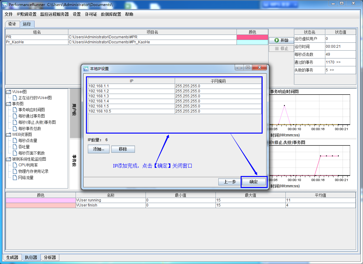 完成IP欺骗设置后,在pr运行界面,加入项目,点击“开始”按钮,执行场景。