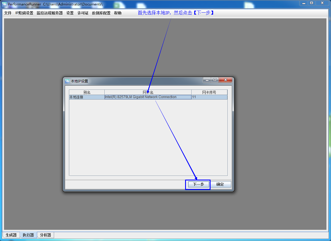 弹出【本地IP设置】窗口。选择本地IP,然后点击下一步