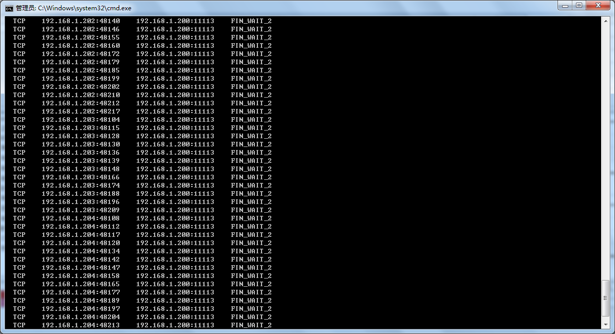 在场景执行时,打开windows cmd.exe,输入“netstat -n”,可以查看到虚拟ip的访问情况