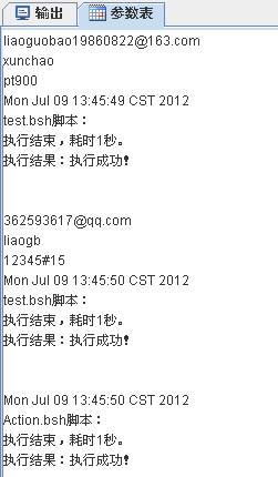 这段脚本用ar.parameterData.getFrom("???")直接获取xls表中的数据,因为在Action脚本中ar.parameterData参数已经被赋值了。运行Action脚本结果如下: