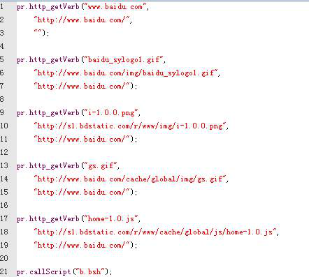 如果想在运行A.bsh脚本时调用B.bsh脚本,则在A.bsh的添加pr.callScript("b.bsh")。
