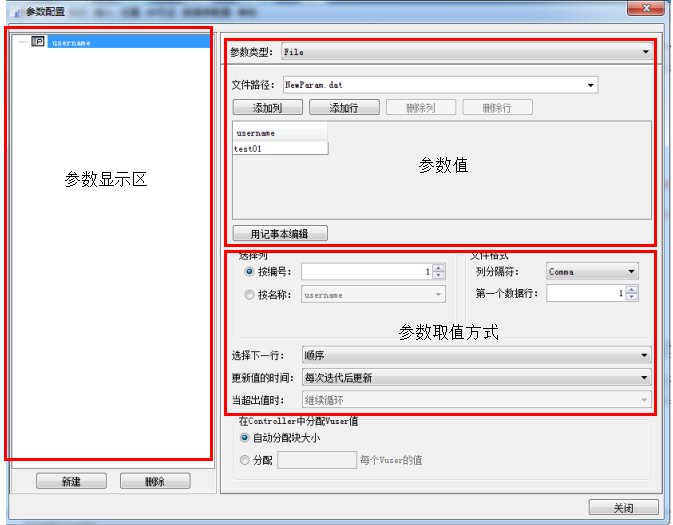 进入参数配置,可新建或删除参数,设置参数值、设置参数取值方式等