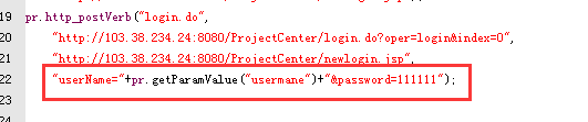 将需要参数化的值替换为“pr.getParamValue("username");”其中username为参数名;具体操作如图所示:
