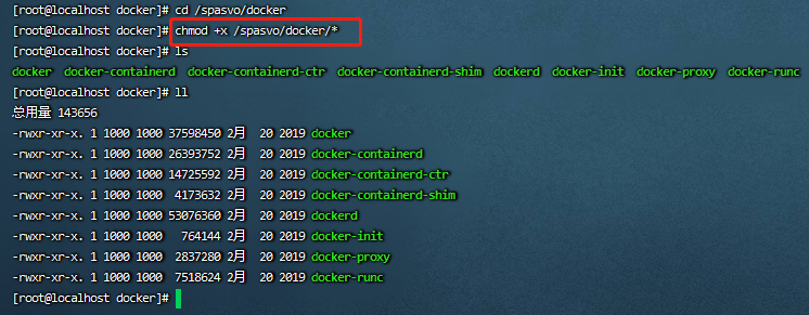 先将docker离线安装包上传至服务器,解压并赋予权限;