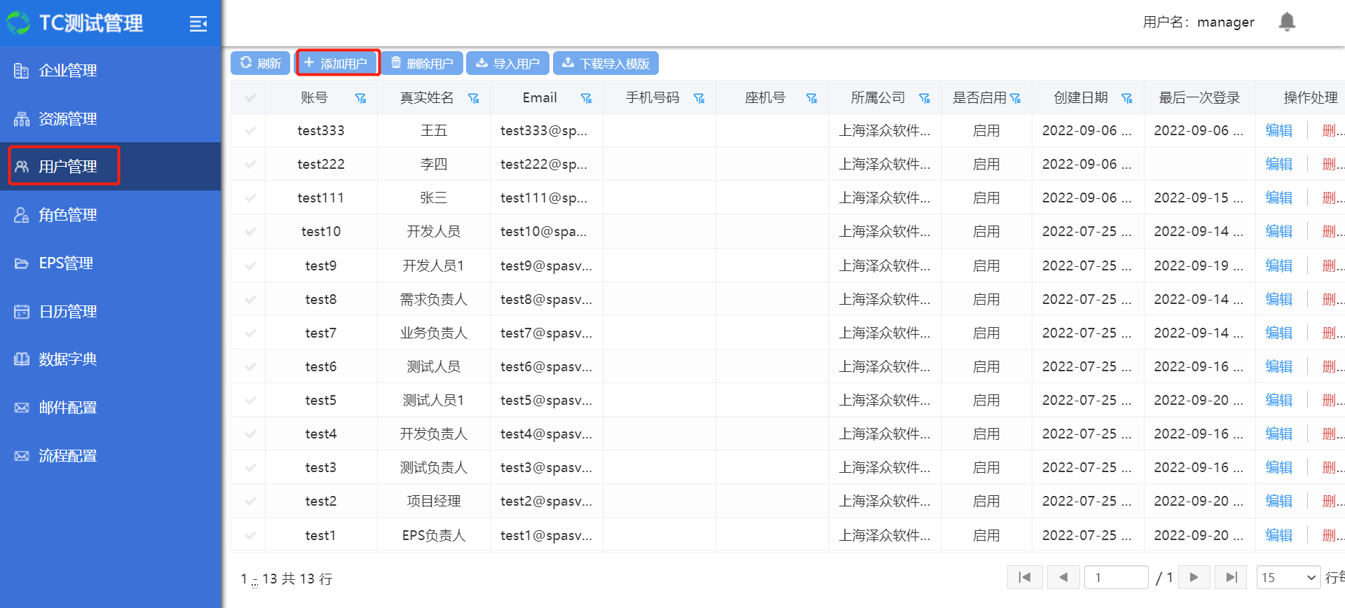 点击【添加用户】按钮,进入创建项目用户界面,输入相关信息,其中Email为你在项目中接收邮件的地址,点击保存生成项目用户,当然也可以勾选“连续添加用户”连续添加。系统中默认的权限角色分别为EPS总监、项目总监以及项目人员,添加用户时可根据对应的角色进行添加;