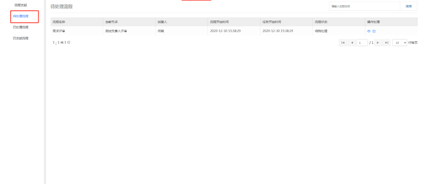 测试负责人登录账号,进入个人中心--评审中心--待处理流程,点击评审按钮,进入评审页面,选择对应的项目(如下图:)