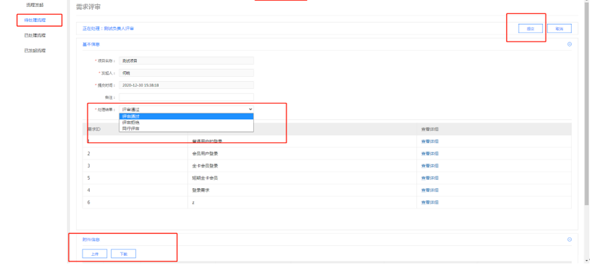 点击处理结果,选择评审通过或评审拒绝、同行评审,点击提交后流程结束;