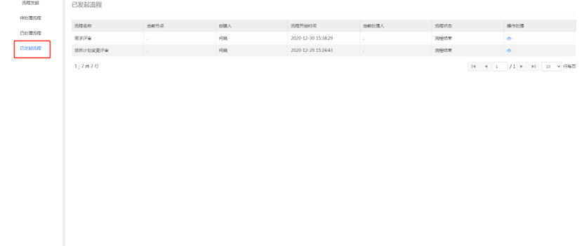评审中心,点击已发起流程,显示出该登录的账号已经发起的流程;