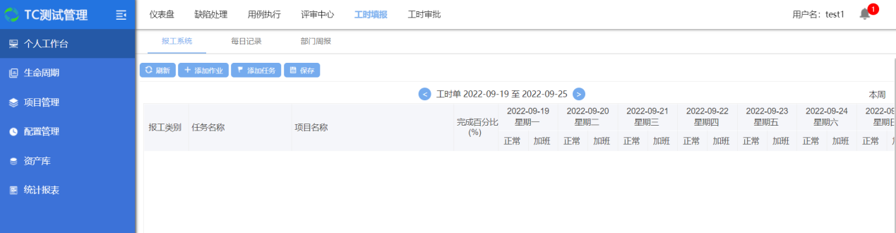 点击工时填报,进入报工系统,在此可进行项目报工、添加每日记录、添加周报等操作;